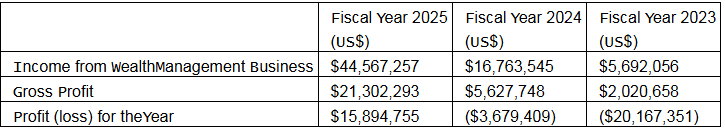 For the fiscal year ended March 31, 2025, Metalpha achieved $44.6 million in income from wealth management business, which was 266% of the amount for the prior year. Net profit reached $15.9 million, a significant turnaround from a net loss of $3.7 million for the prior year.