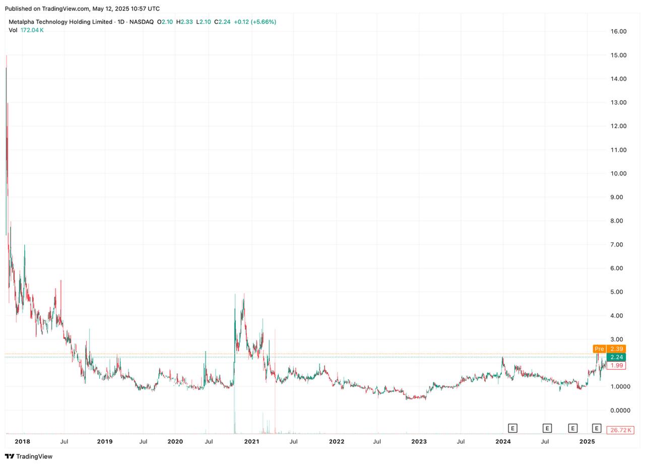 If public market sentiment assigns Metalpha even a conservative 4x sales multiple—below Antalpha’s 5−6x—it could justify a $ 157 million valuation, or roughly $ 4.09 per share, based on 38.37 million shares outstanding. At 5x or 6x multiples, that target price expands toward the $ 5.10-$ 6.13 range.