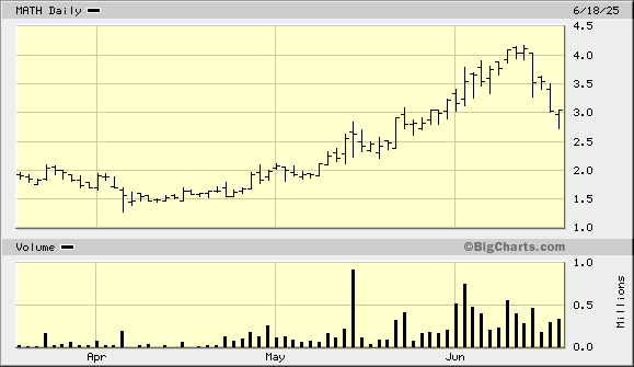 You definitely remember MATH. It has doubled since we first put the ticker on your plate.